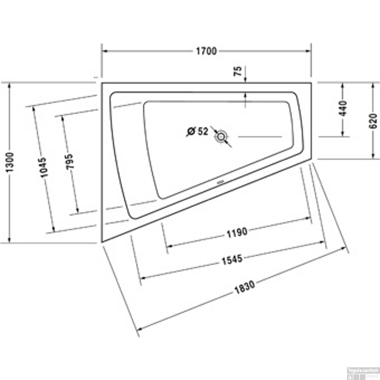 Bad Duravit Paiova 170X130 cm Wit Links