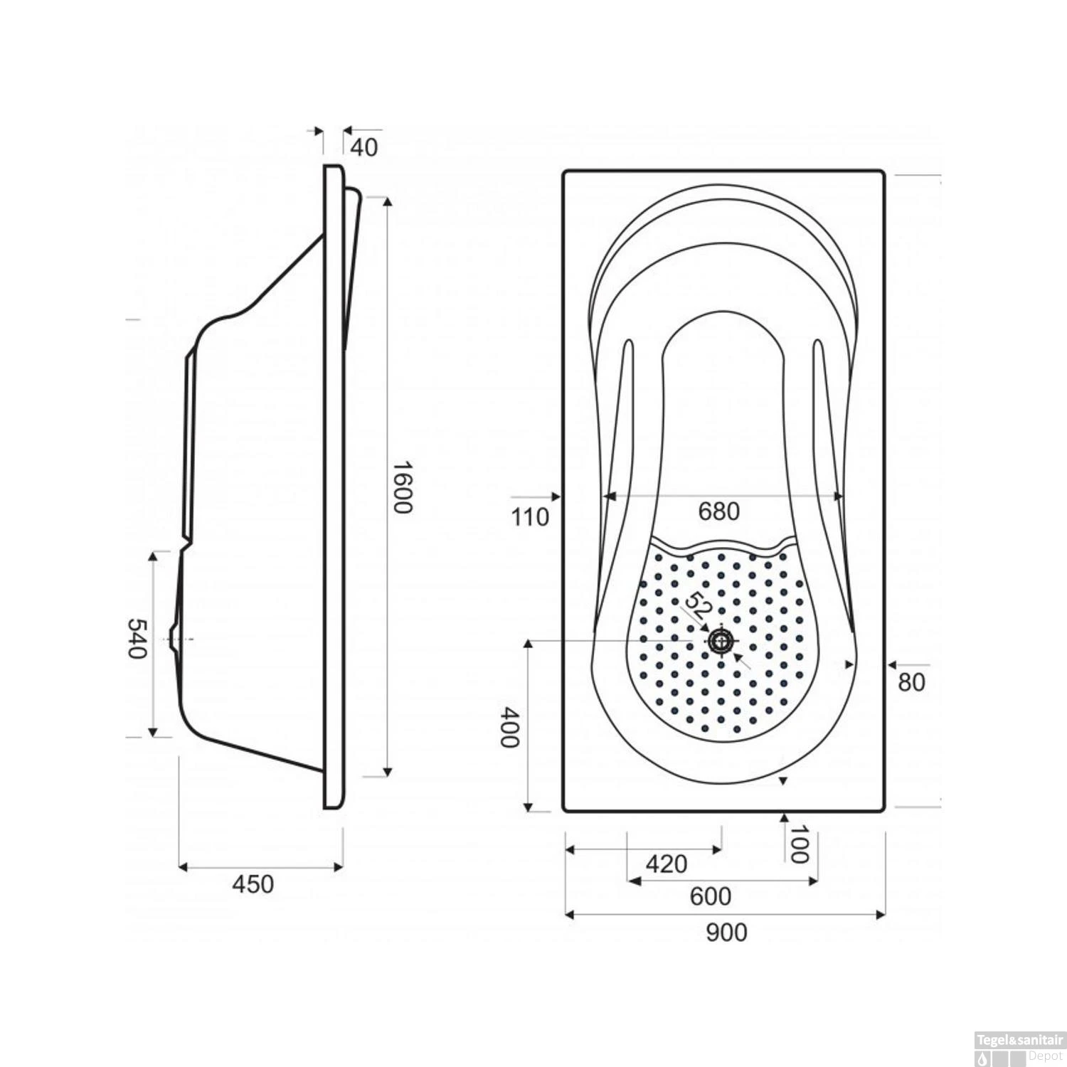 - – Breedte (mm) 900
