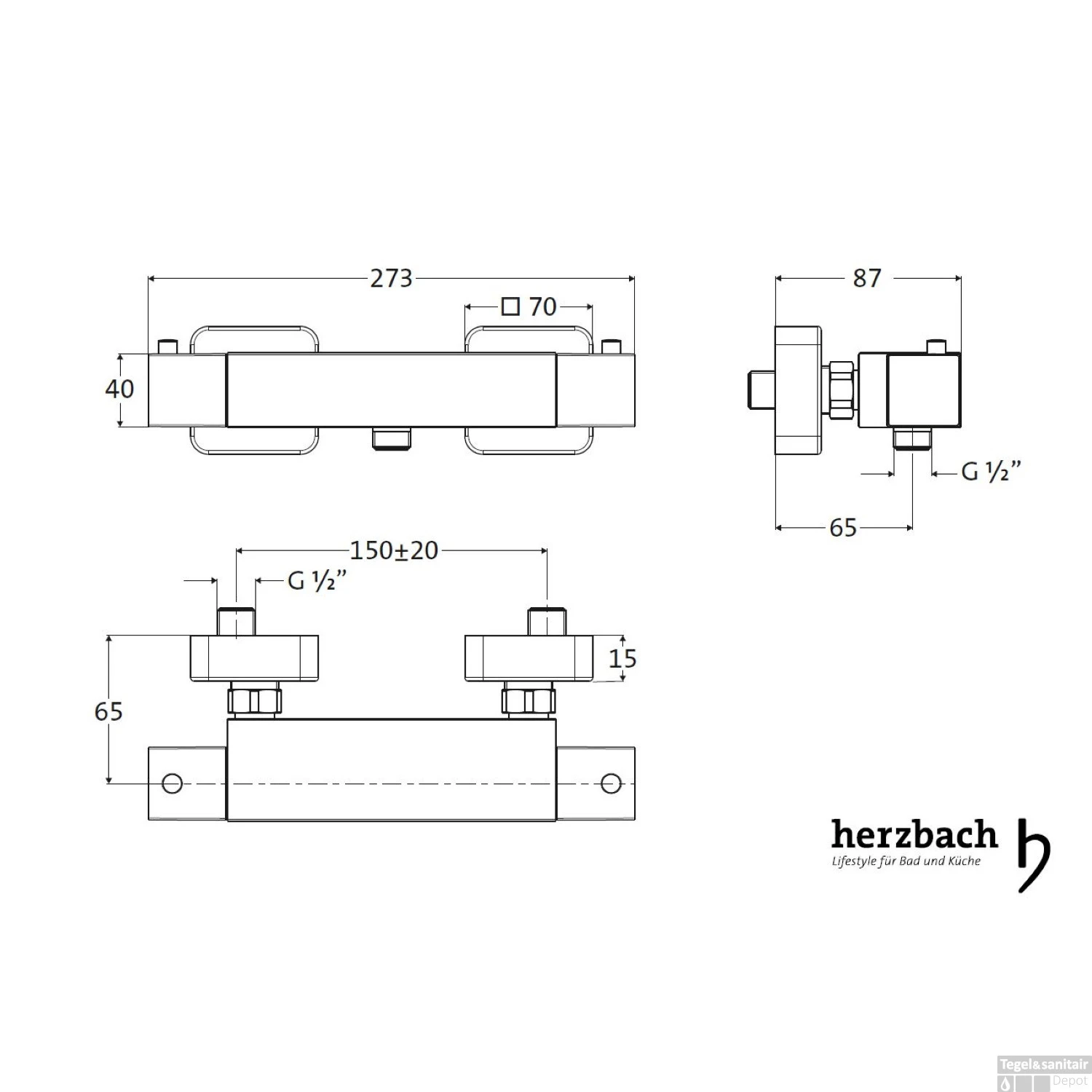 Specificaties Douchekraan Opbouw Herzbach Living Thermostatisch Chroom: