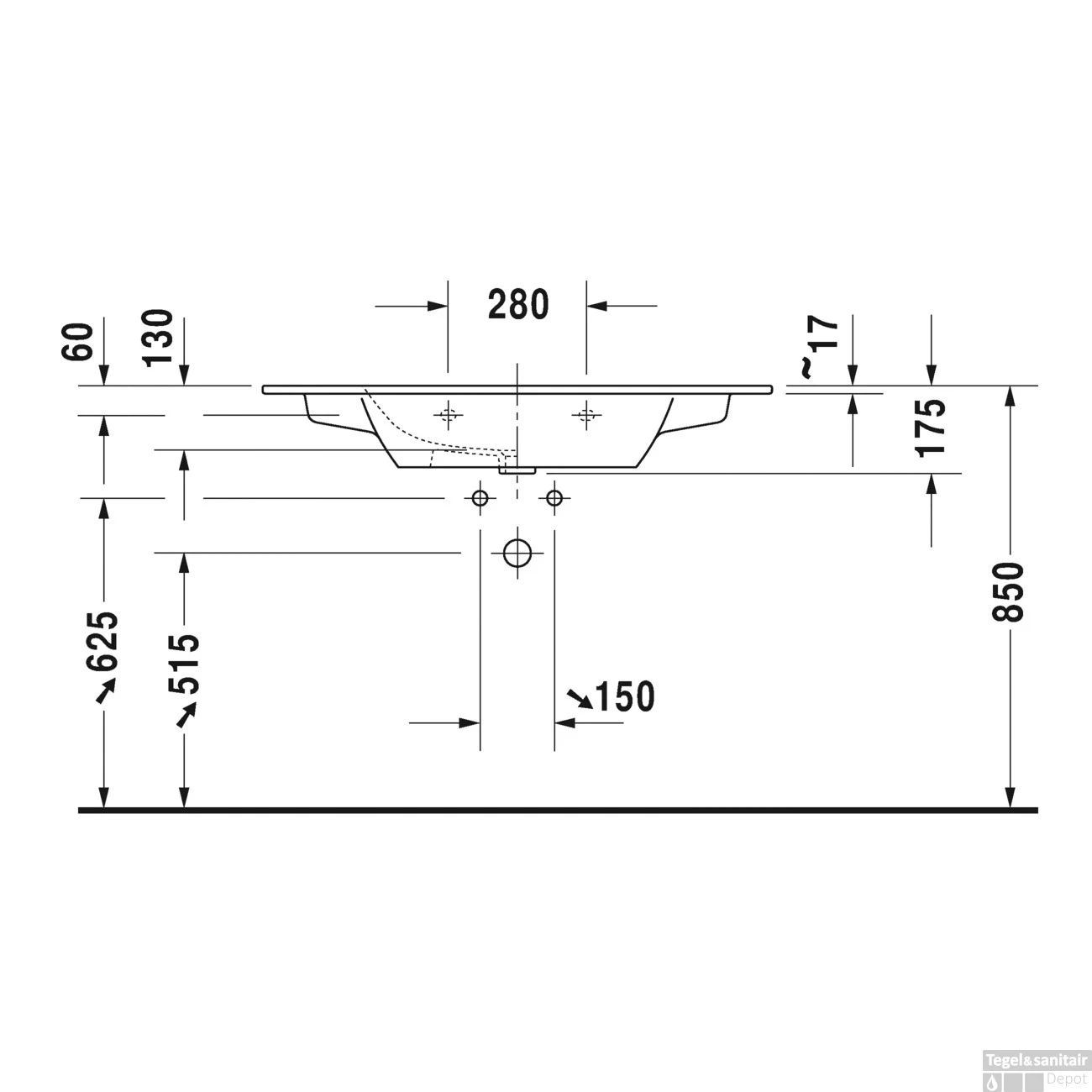 Duravit ME By Starck Meubelwastafel 103x49x17.5 Cm Keramiek Glanzend Wit