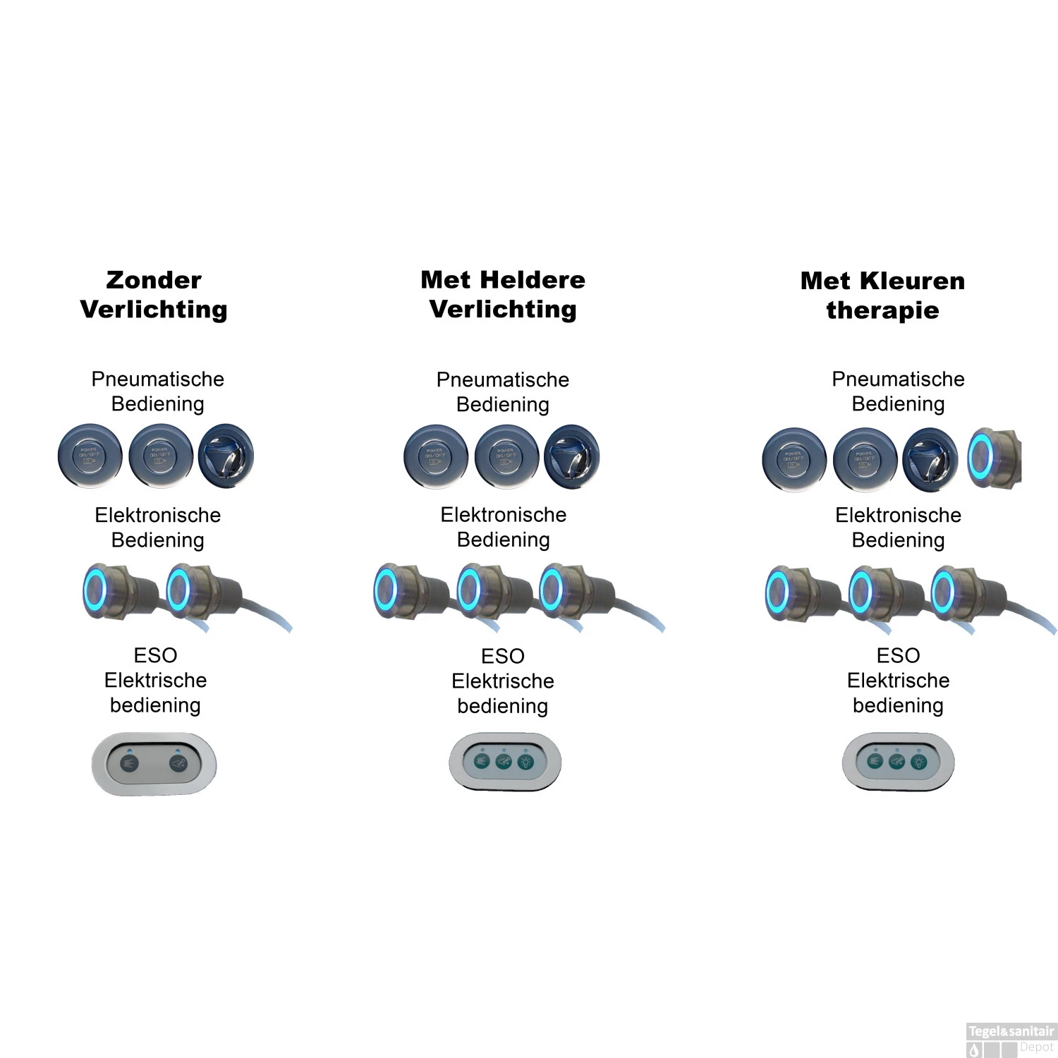 De intensiteit van de jets kunt u instellen door middel van de luchtregelaar, draait u hem linksom, dan krijgt u meer lucht/bubbels, draait u hem rechtsom, dan krijgt u minder lucht/bubbels.