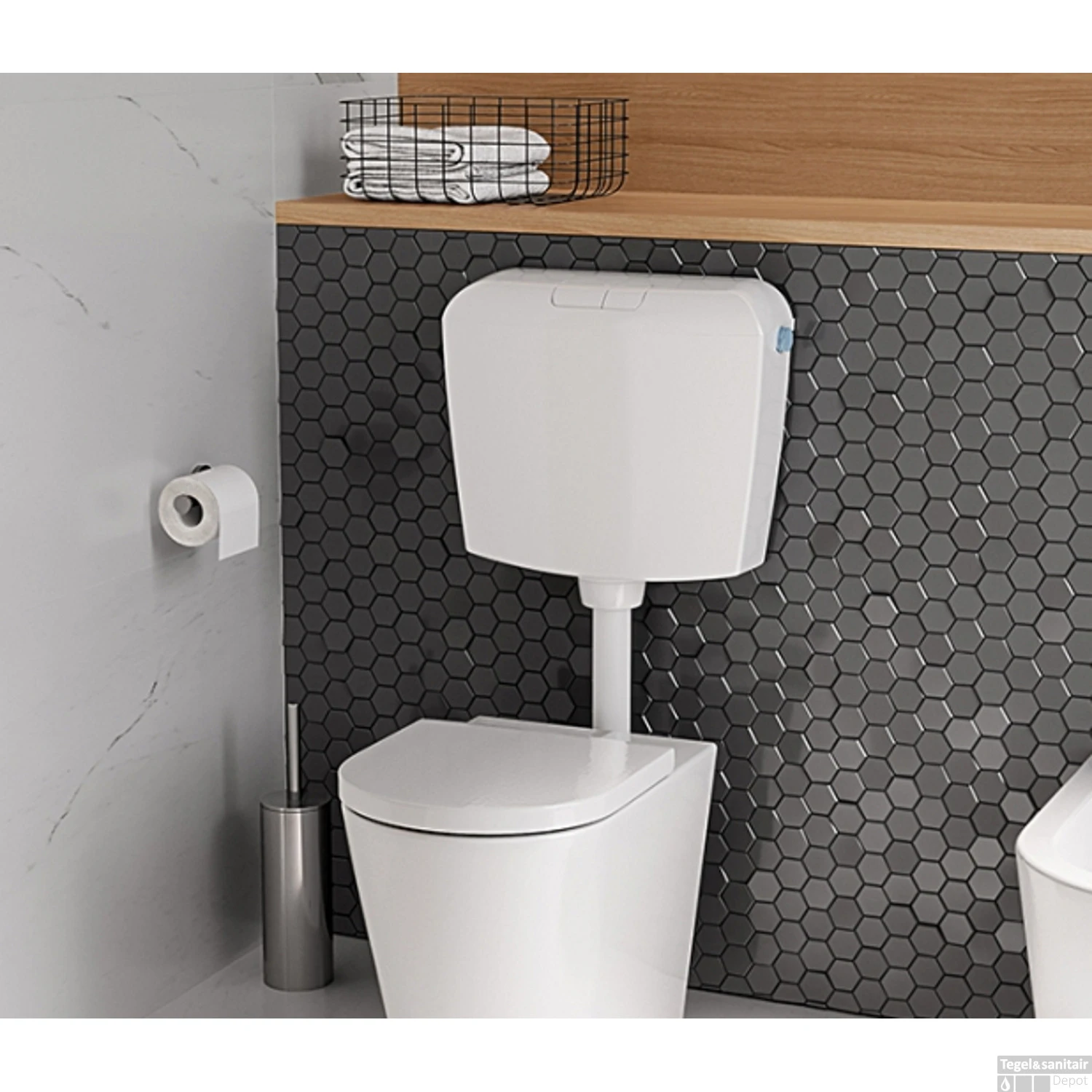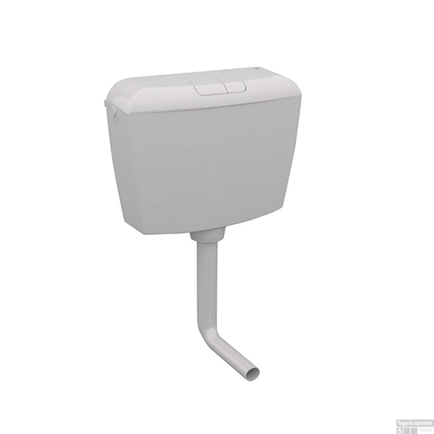 Dit laaghangend kunststof reservoir in wit kan direct aan de muur bevestigd worden, iets boven het toilet. Het reservoir heeft een dubbele spoelfunctie waardoor je kan kiezen voor een grote spoelbeurt van 6 liter of een waterbesparende van slechts 3 liter en wordt geleverd inclusief muurbevestigingsmateriaal, valpijp met een diameter van 50/40mm en een rubber ring voor aansluiting op de toiletpot.