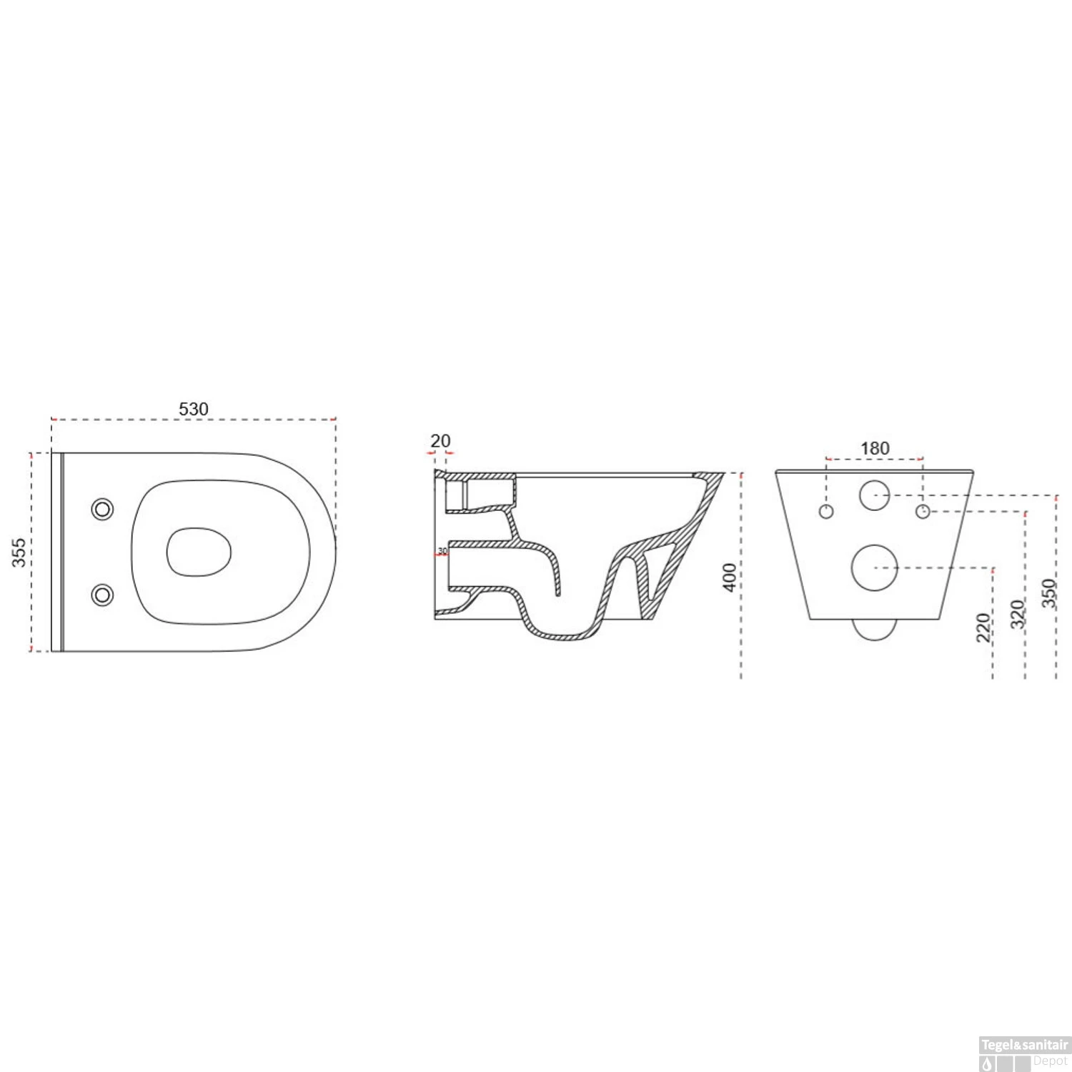 Specificaties Rimless Wandcloset Wiesbaden Luxe 53 cm met Ingebouwde Bidetkraan Warm/Koud Mat Zwart: