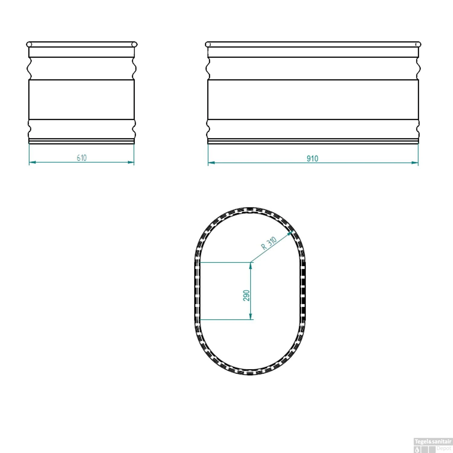 Specificaties IJsbad Tankkd Green Label Oval 91x61x61 cm Aluminium: