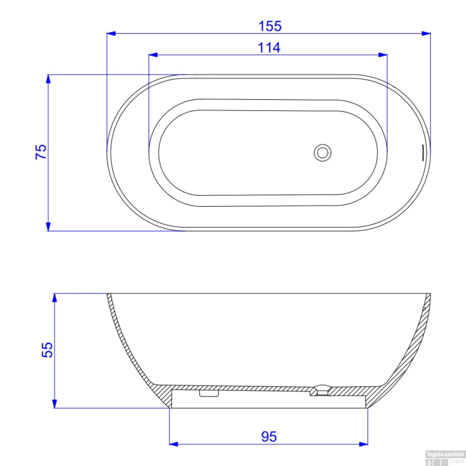 Specificaties Vrijstaand Bad Arcqua Cusco Cast Marble 155x75x55 cm Mat Zwart: