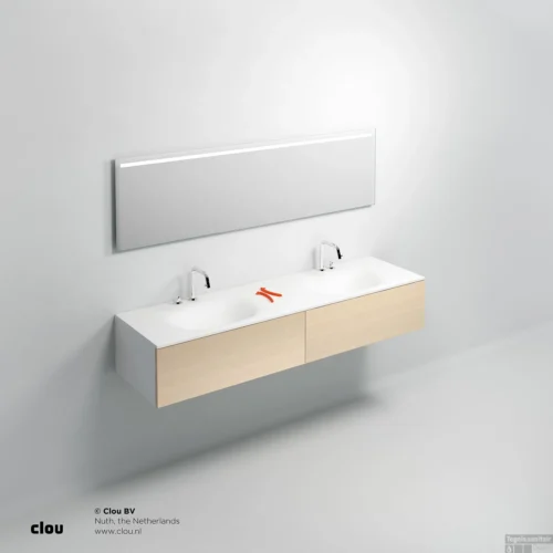 Wastafelblad Clou Hammock Dubbele Waskom 180cm Composiet Mat Wit