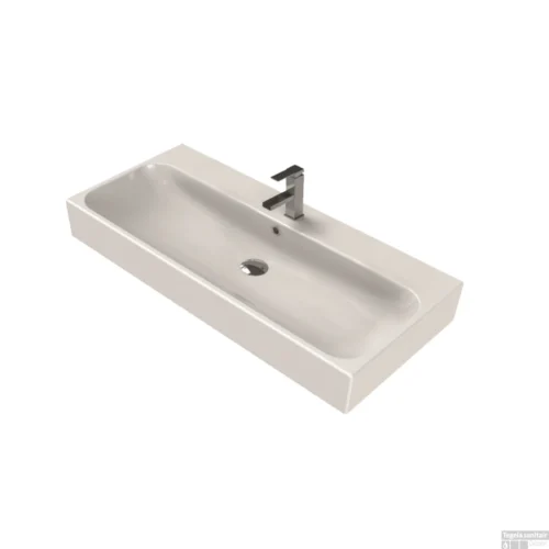 Wastafel Vrijhangend Sanicare Q17 101×46,5 Cm Keramisch Wit (0, 1 Of 2 Kraangaten)
