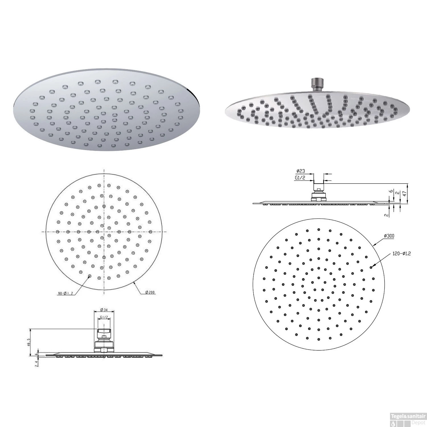 - 1 x Hoofddouche RVS rond 20 of 30 cm tegen meer prijs (vierkant of rond)
